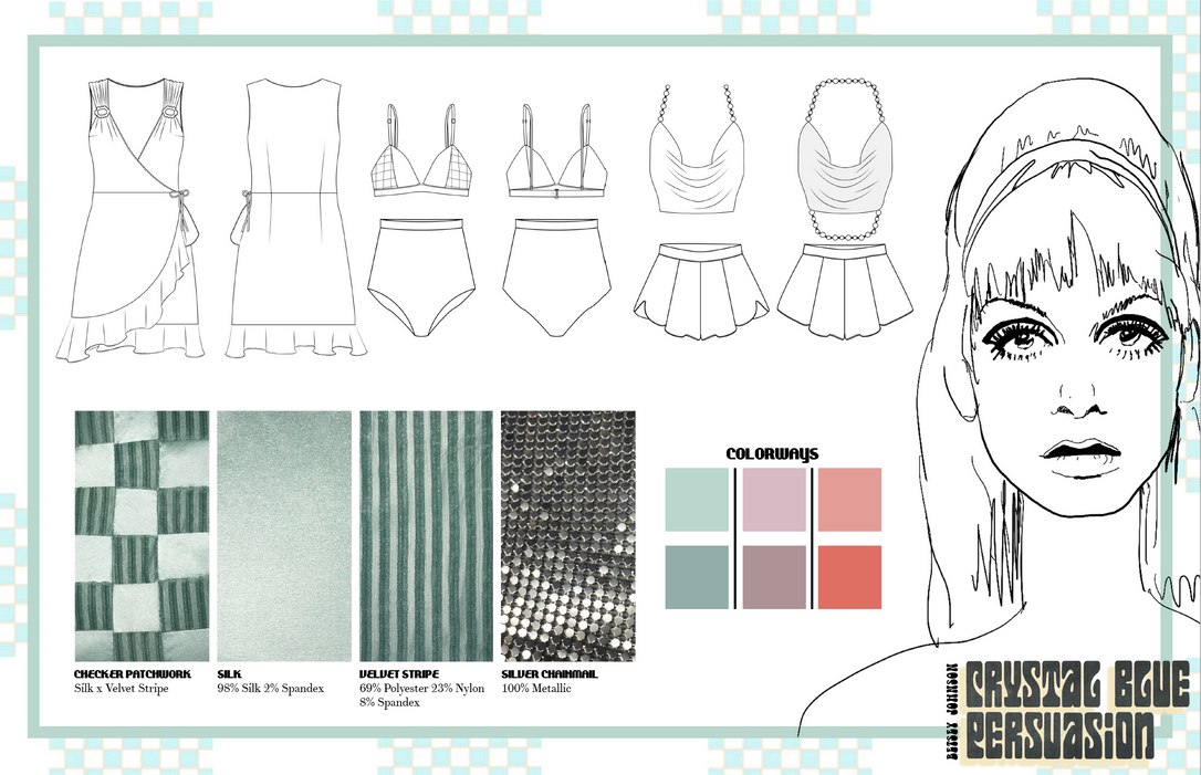 Inspired by the 1968 song "Crystal Blue Persuasion" by Tommy James & the Shondells, this lingerie capsule collection updates the retro high waist silhouette with modern textiles to evoke sexy, persuasive looks.